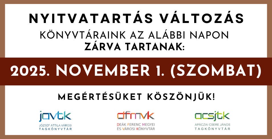 Könyvtárunk november 1-én zárva tart.