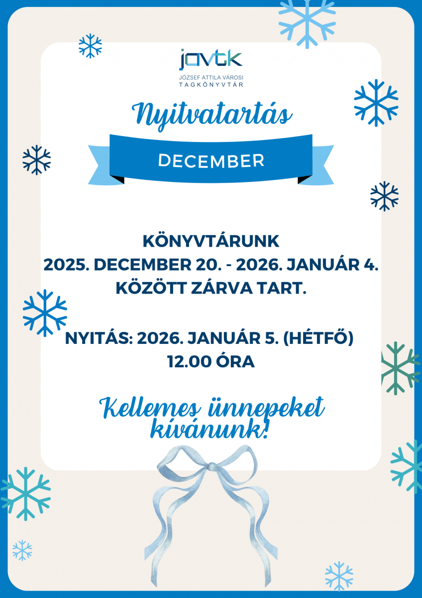 2025. december 20. - 2026. január 4. ZÁRVA
